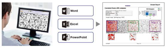 创建报告所用的时间常常比采集图像和测量还长。奥林巴斯Stream软件提供的直观报告创建功能能够根据预先设定的模板多次创建复杂报告。